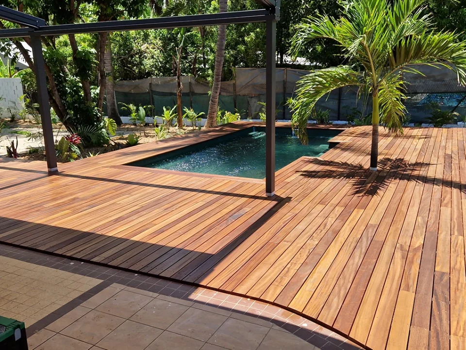 Nos lames de terrasse en bois exotique sont rigoureusement sélectionnées pour leur durabilité, leur stabilité et leur adaptation aux conditions tropicales.