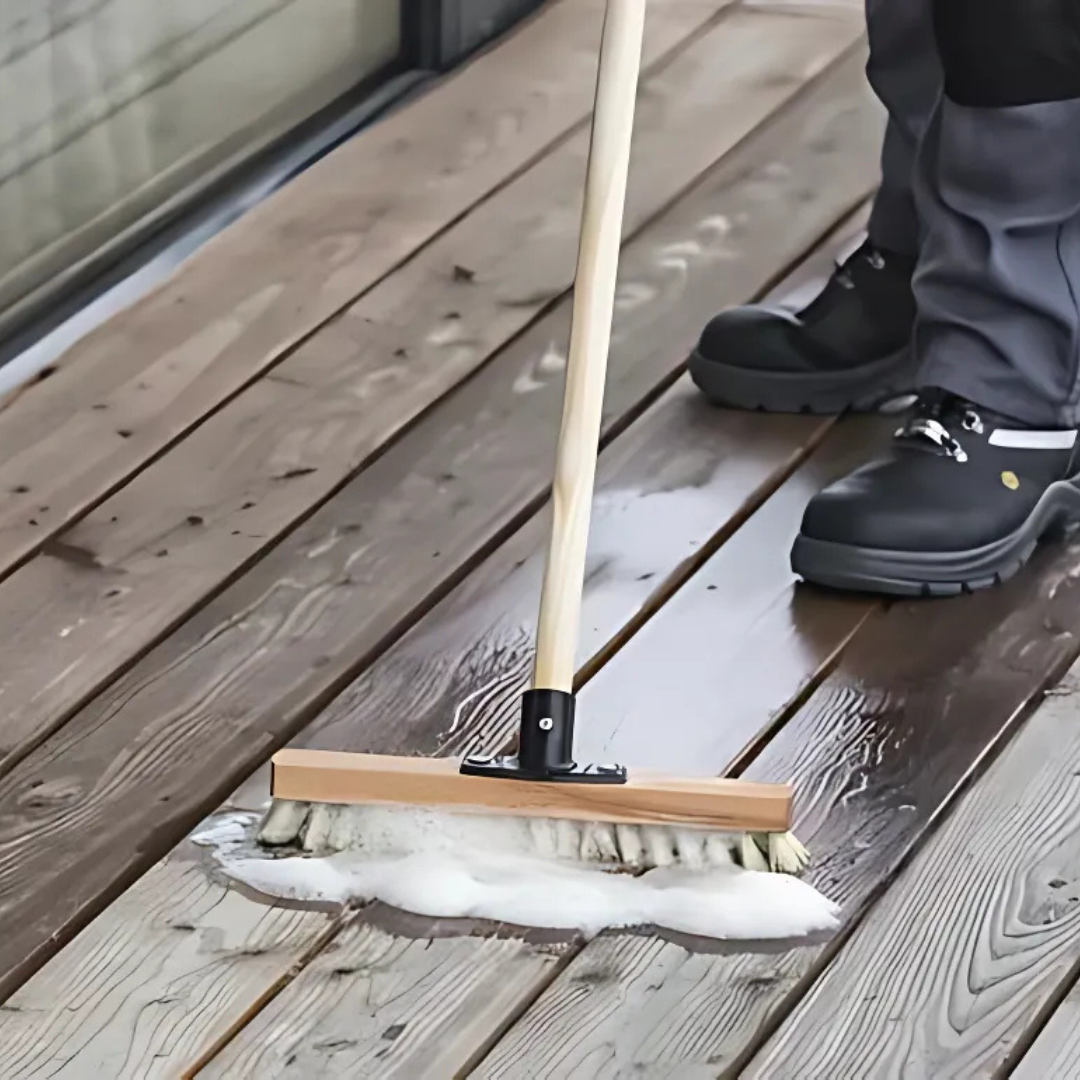 • Nettoyez à l'eau savonneuse : Utilisez un balai-brosse et de l'eau tiède mélangée à un savon doux pour décrasser la surface.