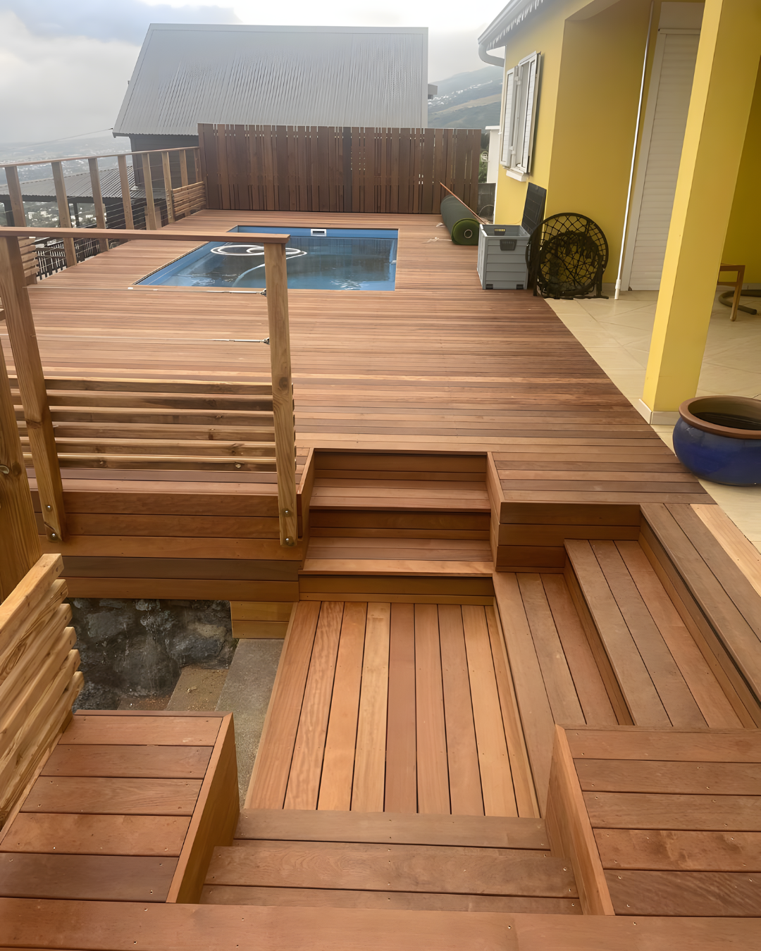 En travaillant avec nous, vous bénéficiez de notre expertise unique dans le bois exotique et d’un accompagnement personnalisé. Que votre terrasse soit neuve ou nécessite une rénovation, nous mettons notre savoir-faire au service de vos besoins pour prolonger sa durée de vie tout en réduisant les coûts liés à d’éventuelles réparations futures. Grâce à notre service d’entretien, vous préservez non seulement la valeur esthétique de votre terrasse, mais aussi votre sérénité. Faites confiance à des spécialistes qui allient passion du bois et exigence de qualité pour sublimer vos extérieurs.